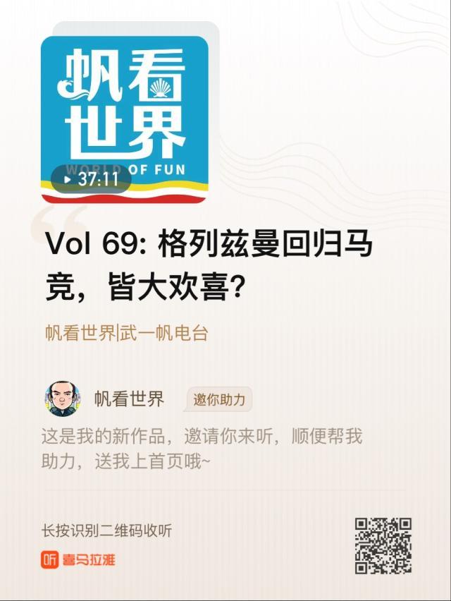 点击下方链接,或登录喜马拉雅搜索“帆看世界”,即可收听节目,和武一帆一起说足球,观天下。